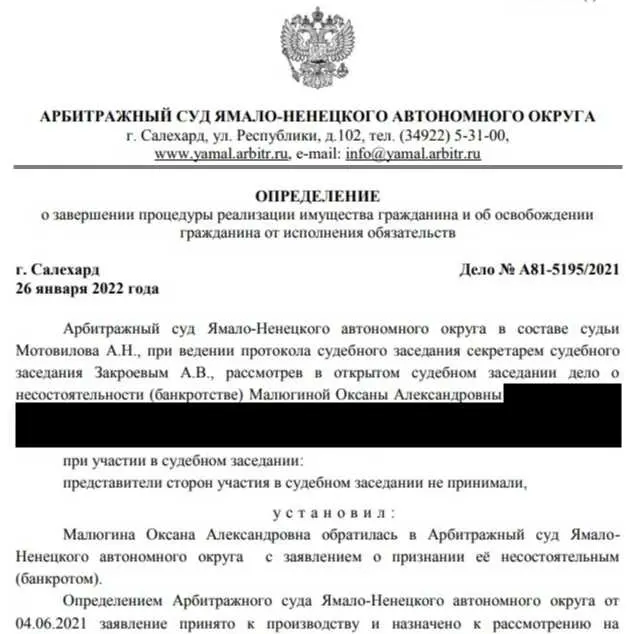 Дело А81-5195/2021 Сумма долга: 605 844,01 Результат: долги списаны