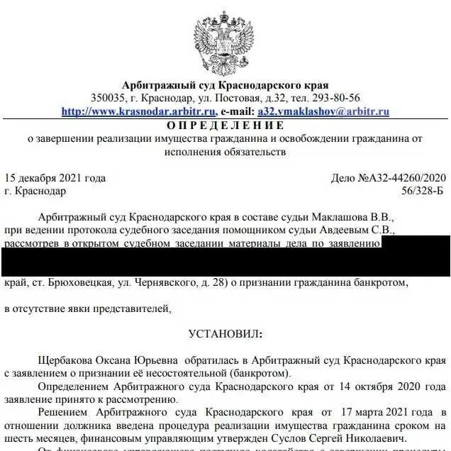 Дело А32-44260/2020 Сумма долга: 526 694,25 Результат: долги списаны