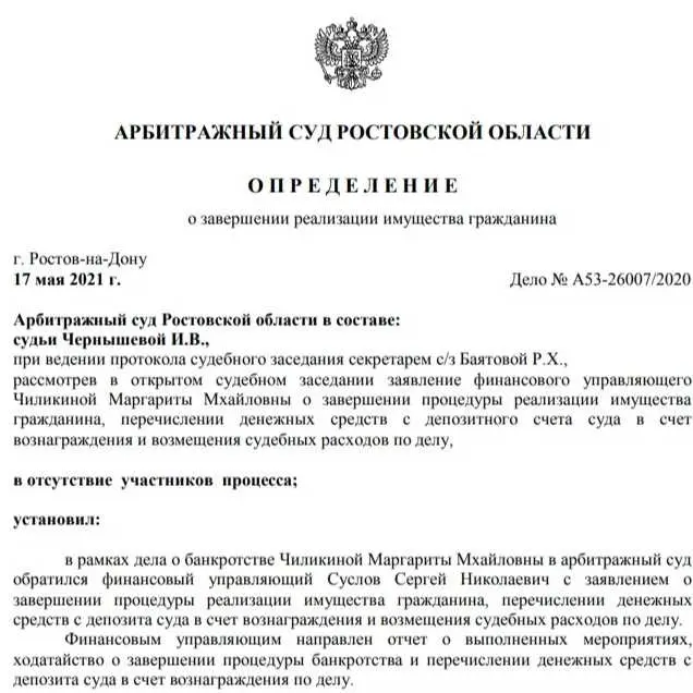 Дело А53-26007/2020 Сумма долга: 1 310 911,47 Результат: долги списаны